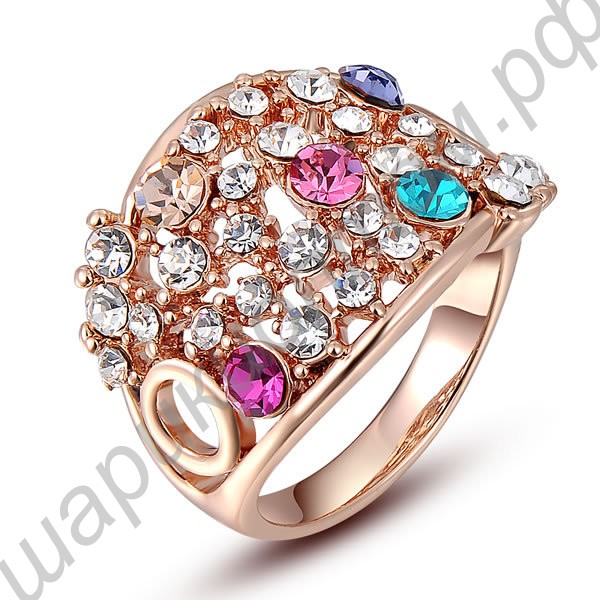 Кольцо Gorgeous 18K Rose Gold Plated Multicolour SWA Element Austrian Crystal.